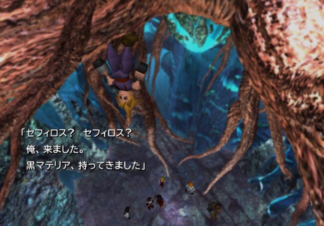セフィロスに敬語で語りかけ、黒マテリアを捧げようとするクラウド