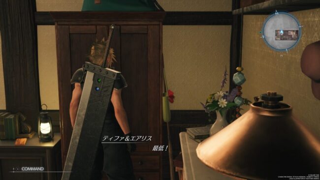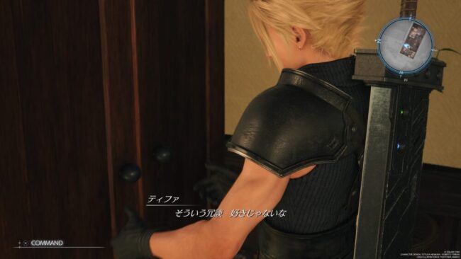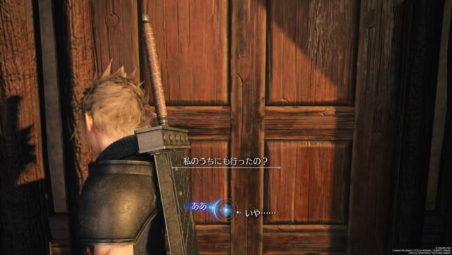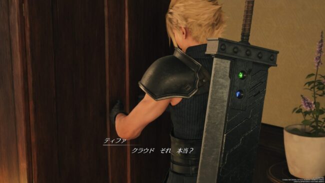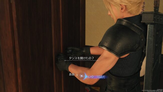 FF7リバースでの回想シーンでは、クラウドが箪笥たんす開けた場合開けなかった場合とで仲間たちの反応が少々異なります。