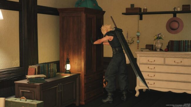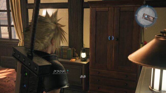 箪笥の中身に驚愕(?)する素振りを見せるクラウド