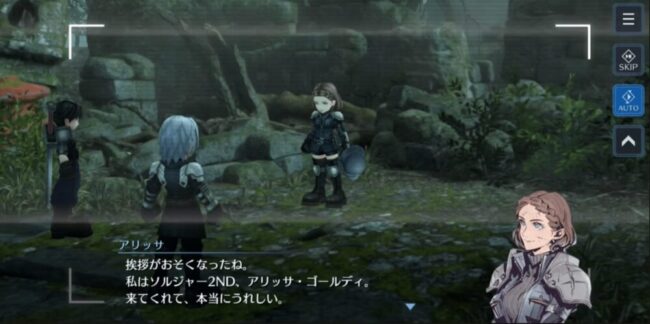 ソルジャーのヘルメットを脱いで自己紹介するアリッサ