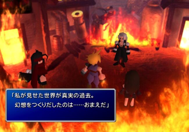 このように過去の光景を“幻影”という形で再現するのはジェノバの能力であり、原作版FF7においてはセフィロスが同じようなことをやっています。