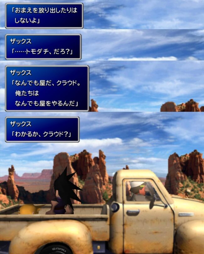 実際のところ、FF7の難解な物語設定と相まってザックスの正体を理解できないままクリアしてしまったプレイヤーも多いとか。